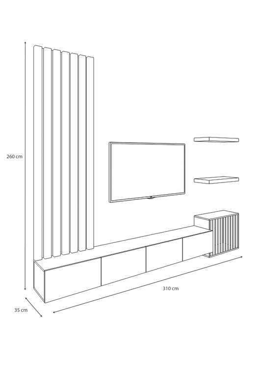طول ۳۱۰، عرض ۳۵، ارتفاع ۲۶۰