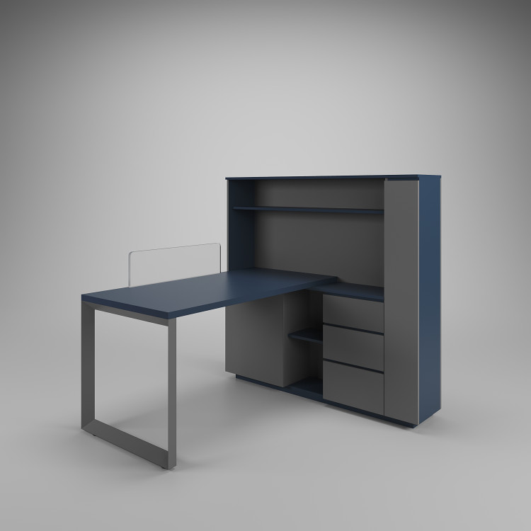 فایل دارای سه کشو با ریل سه تکه ساچمه ای قفل دار و فایل درب دار با لولا آرام بند، دریچه عبور کابل فلزی روی صفحه اصلی، محل قرار گیری کیث، محل قرارگیری کتاب و لوازم، دیوایدر شیشه ای روی صفحه اصلی