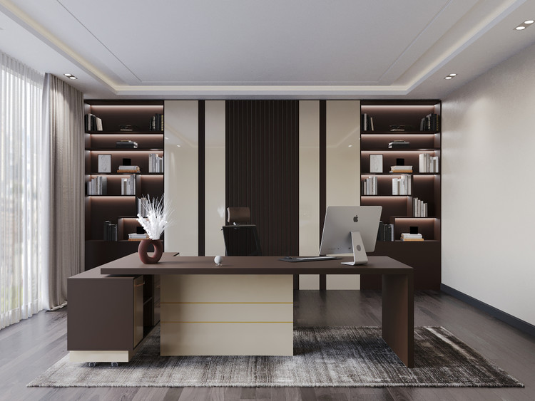 امکانات موجود به همراه میز: کشو دارای ریل آرام بند و کف کشو چرمی، محل قرارگیری کتاب و کیف