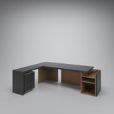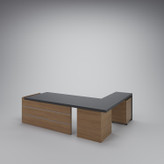 کشو دارای ریل آرام بند و کف کشو چرمی، دریچه فلزی عبور سیم روی صفحه اصلی