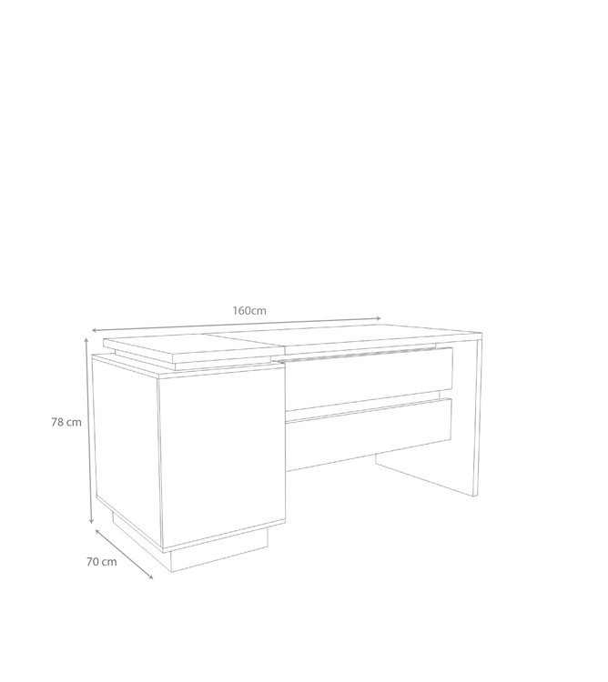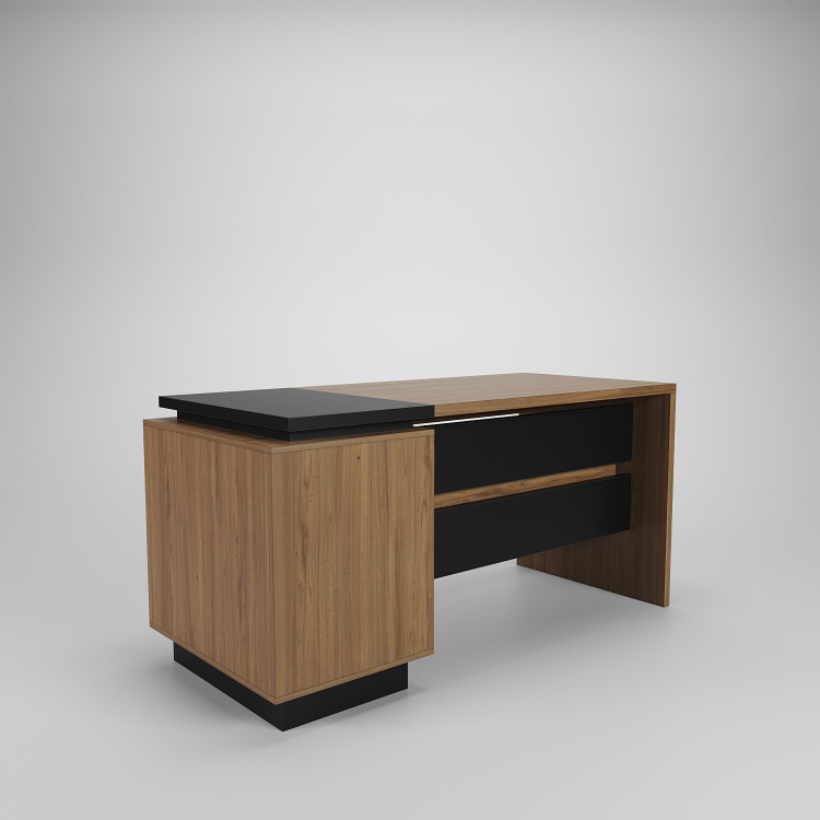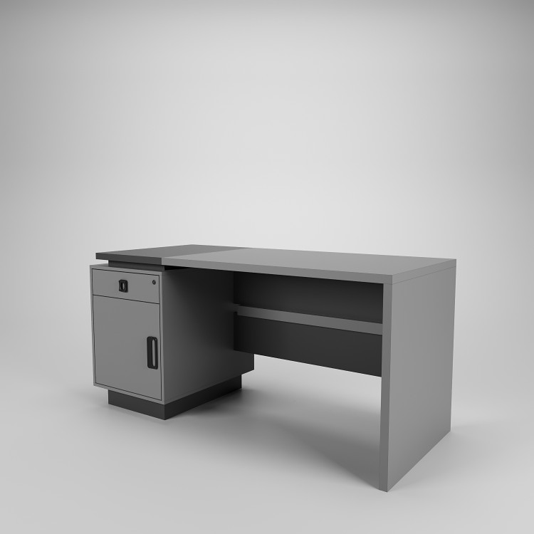 امکانات موجود به همراه میز: فایل دارای یک کشو با ریل سه تکه ساچمه ای و قفل دار و فایل درب دار با لولا آرام بند، دریچه عبور کابل فلزی روی صفحه اصلی