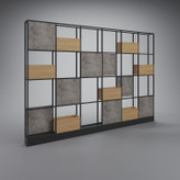 / سازه فلزی پروفیل ۲ در ۲ با رنگ الکترواستاتیک، ام دی اف طرح بتن طوسی و طرح چوب قهوه ای