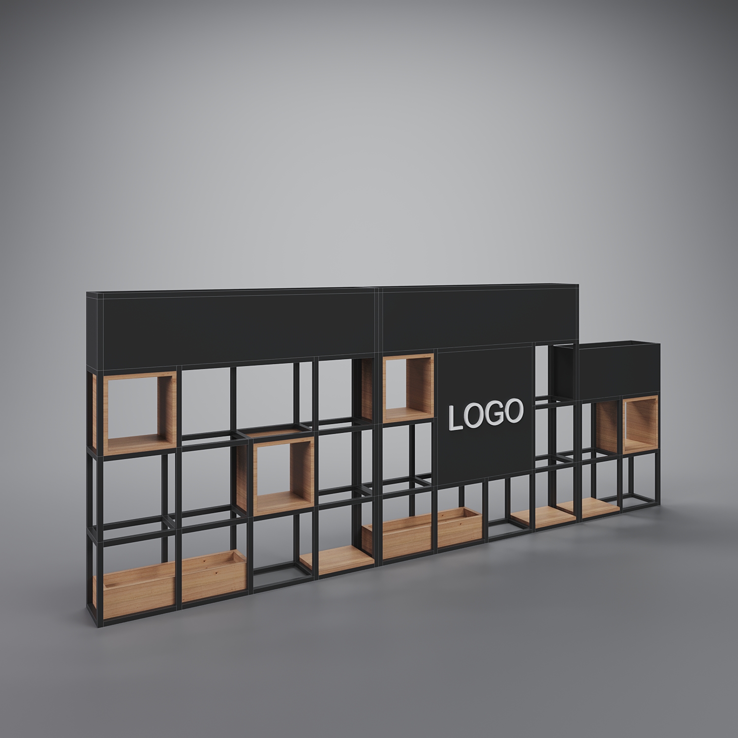 / سازه فلزی پروفیل ۲ در ۲ با رنگ الکترو استاتیک، ام دی اف سوپرمات مشکی و طرح چوب