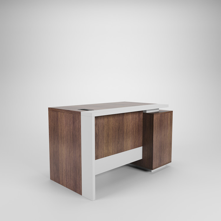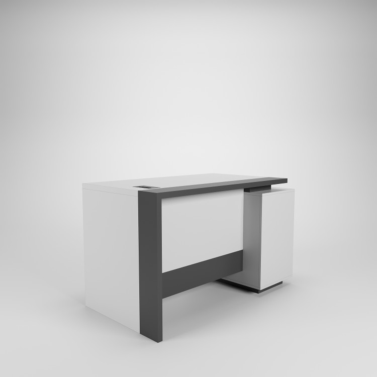 امکانات موجود به همراه میز: کشو دارای ریل سه تکه ساچمه ای قفل دار و فایل درب دار با لولا آرام بند، دریچه عبور کابل فلزی روی صفحه اصلی